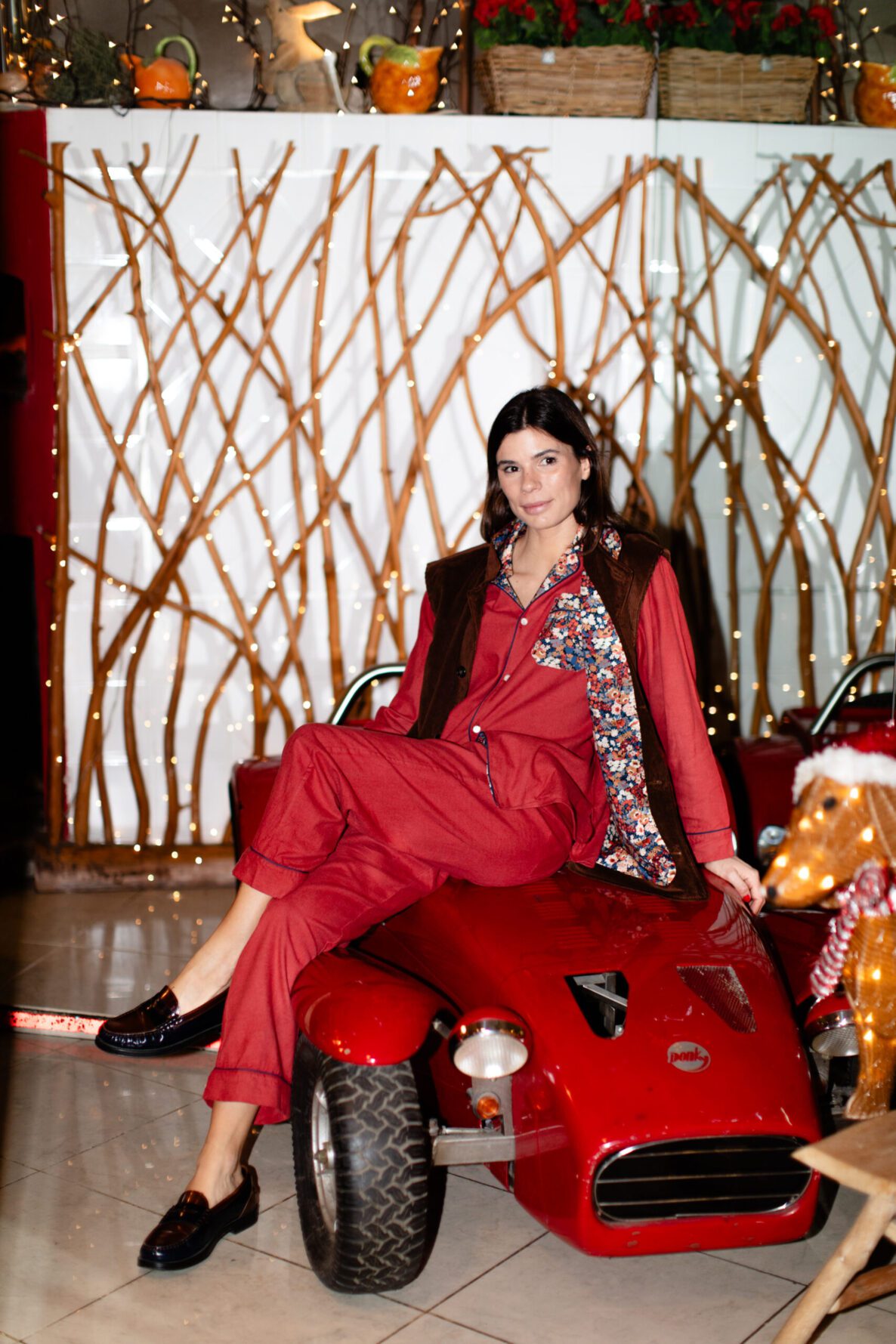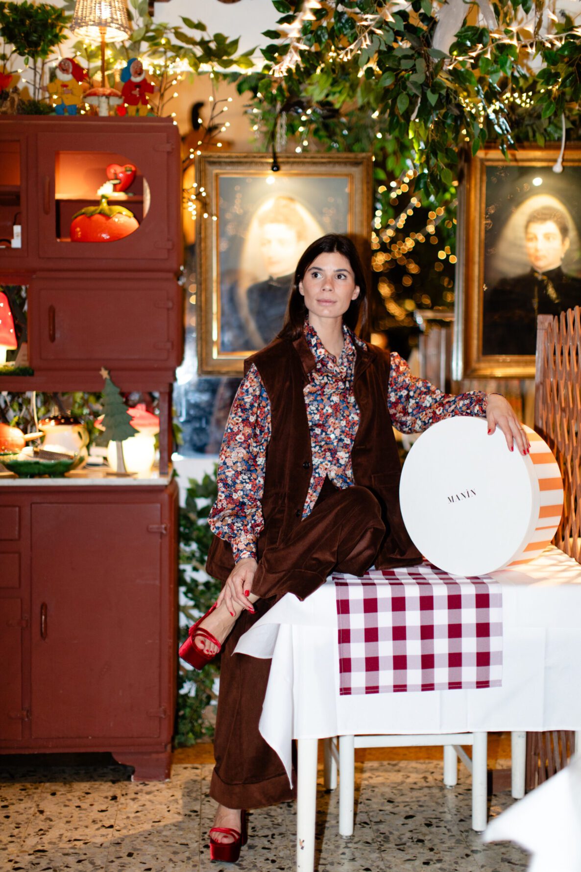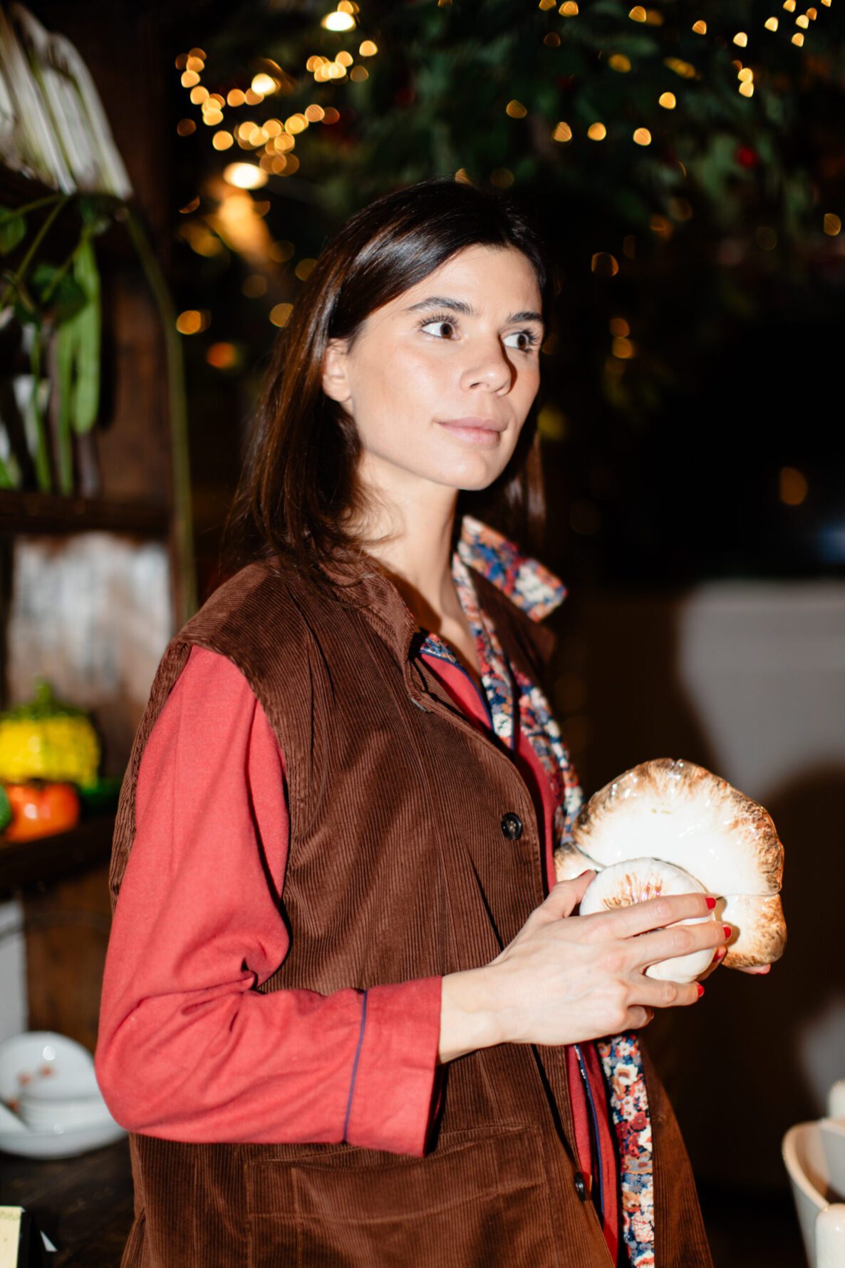 The generous tool pockets are divided into thoughtful compartments — ready to hold books, pencils, chocolate, watercolours or garden secateurs. There is even a hidden pocket, for secrets and small treasures. Worn over the Manìn Chemise, the collar and balloon sleeves create structure and a whimsical silhouette that feels distinctly Manìn. And for the most refined winter look, the vest can be paired with the tailored trousers in the same Zegna tobacco velvet for an elegant, unexpected garden-couture ensemble.