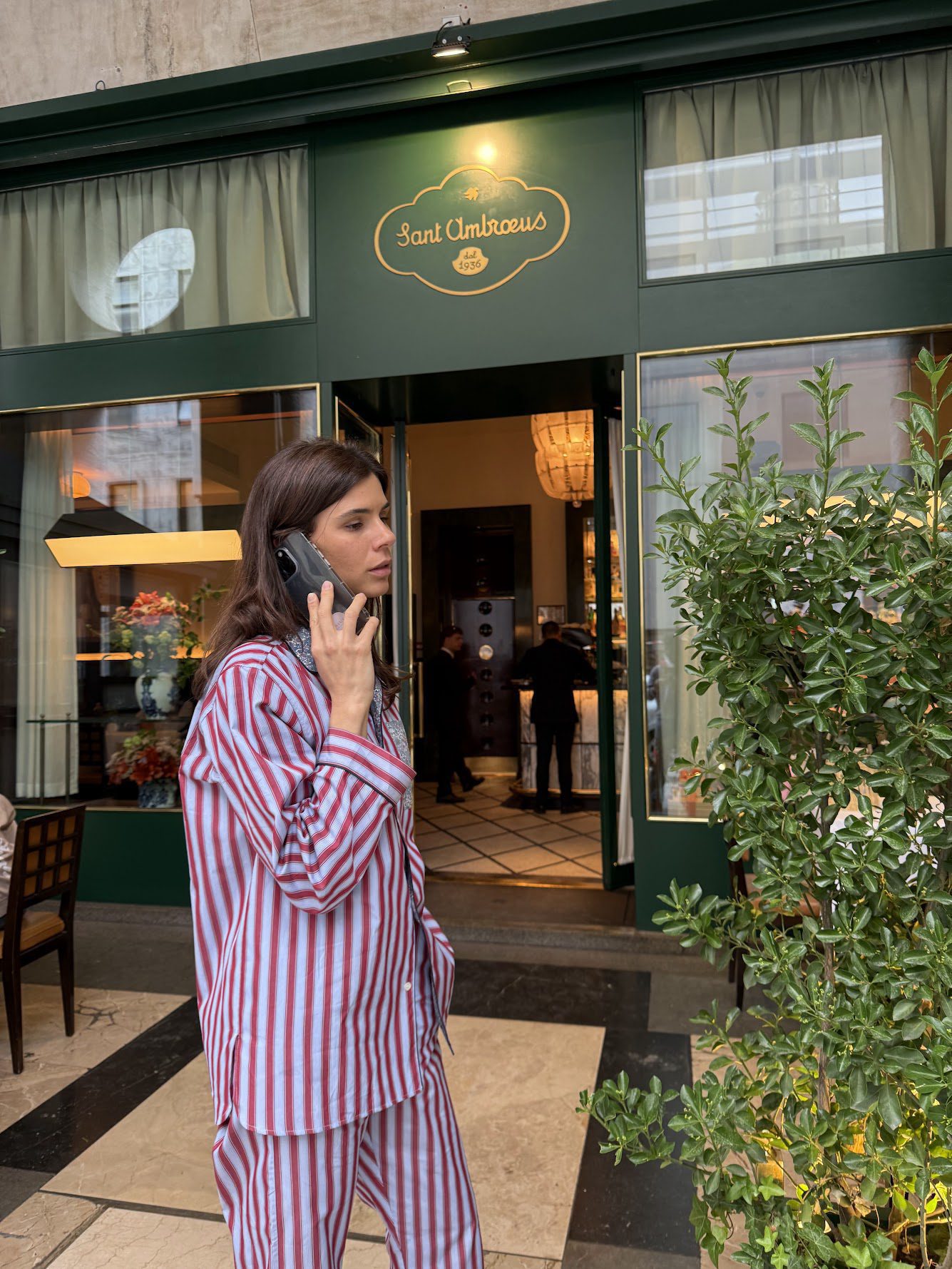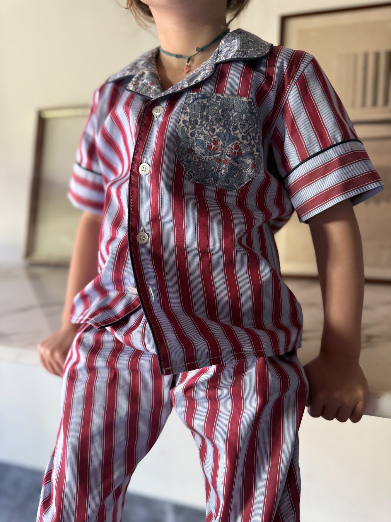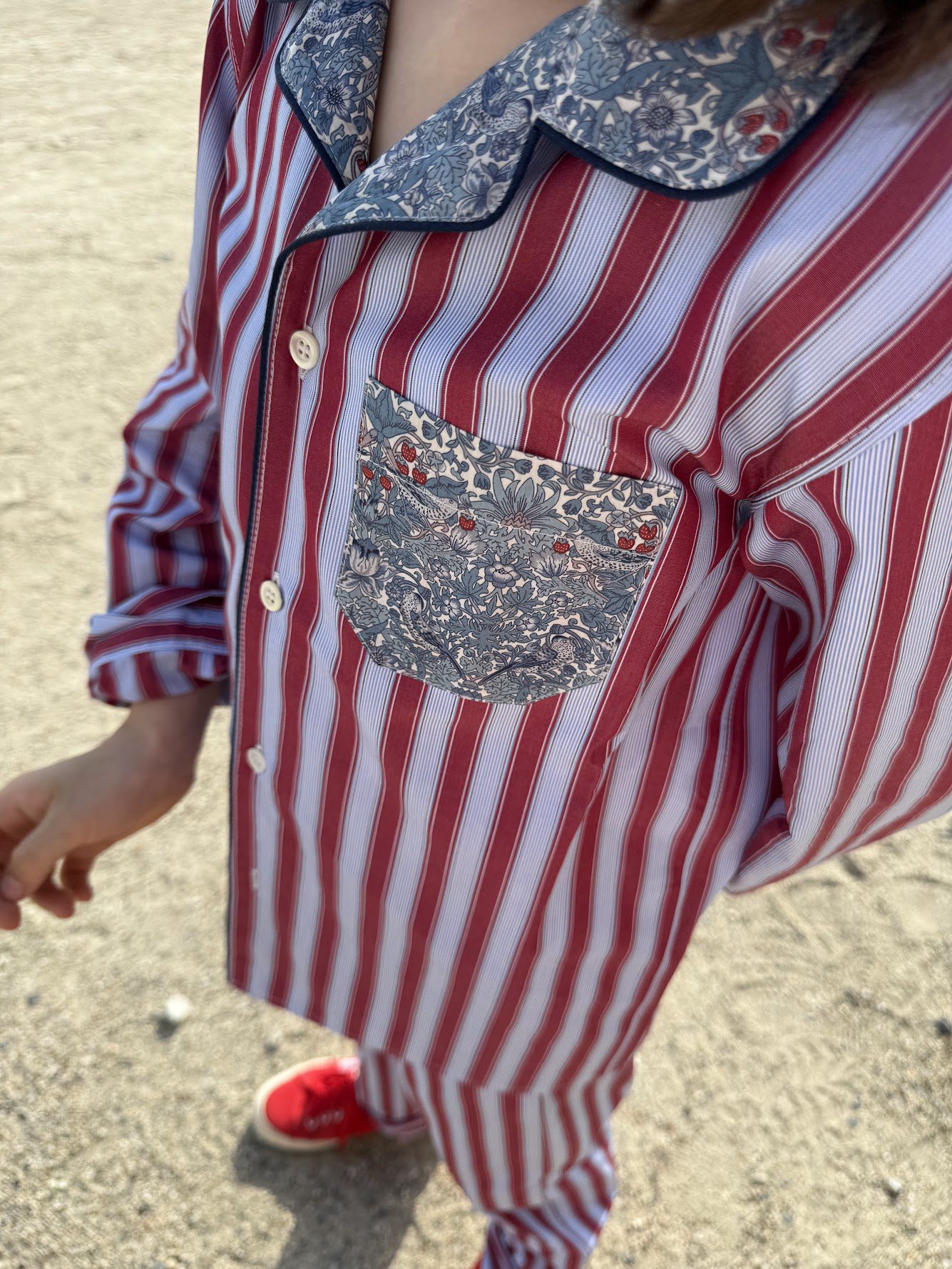 Woman Long Pyjama – Red & Blue Stripe with Liberty William Morris
