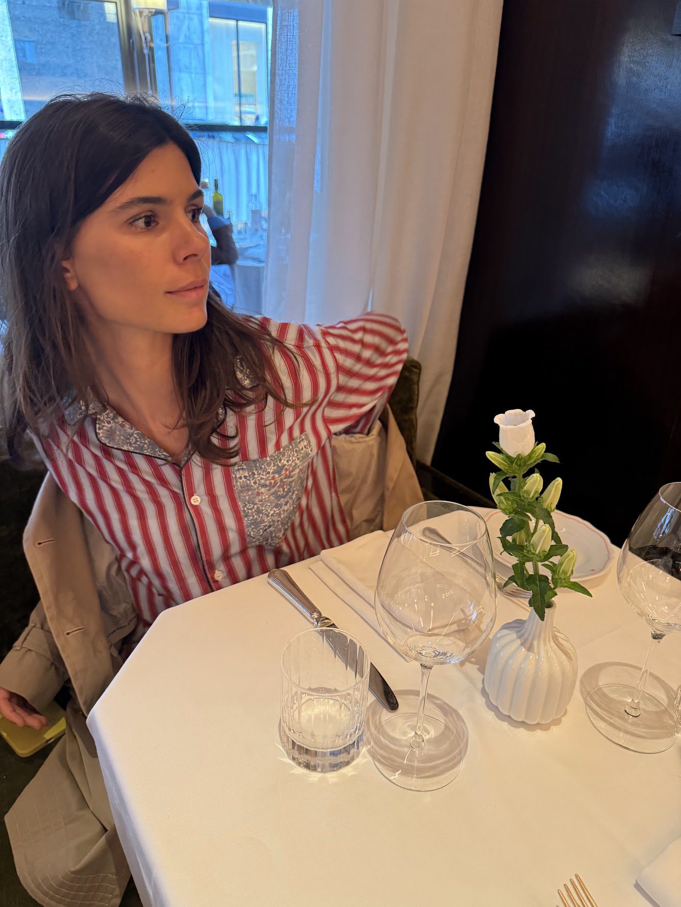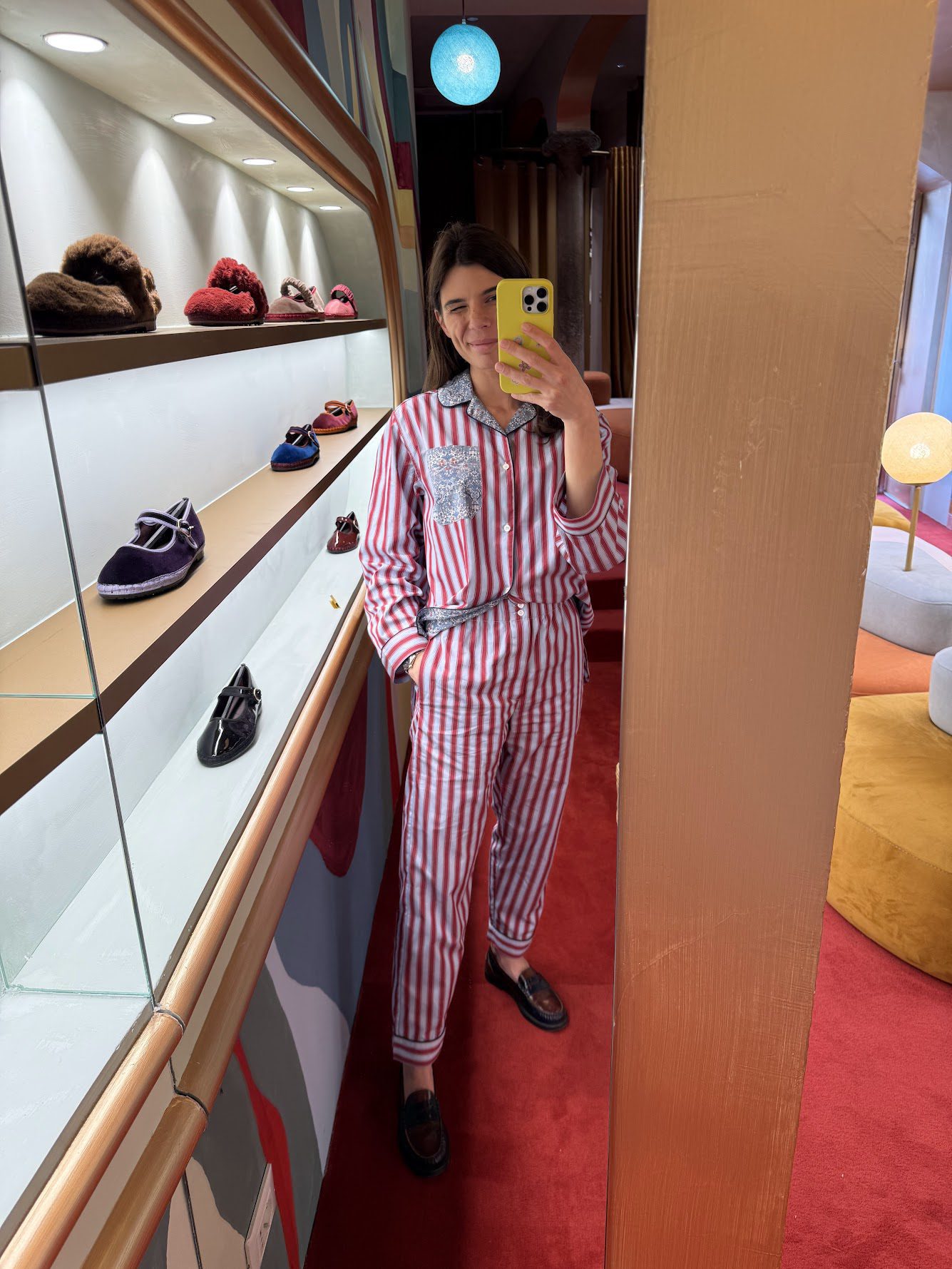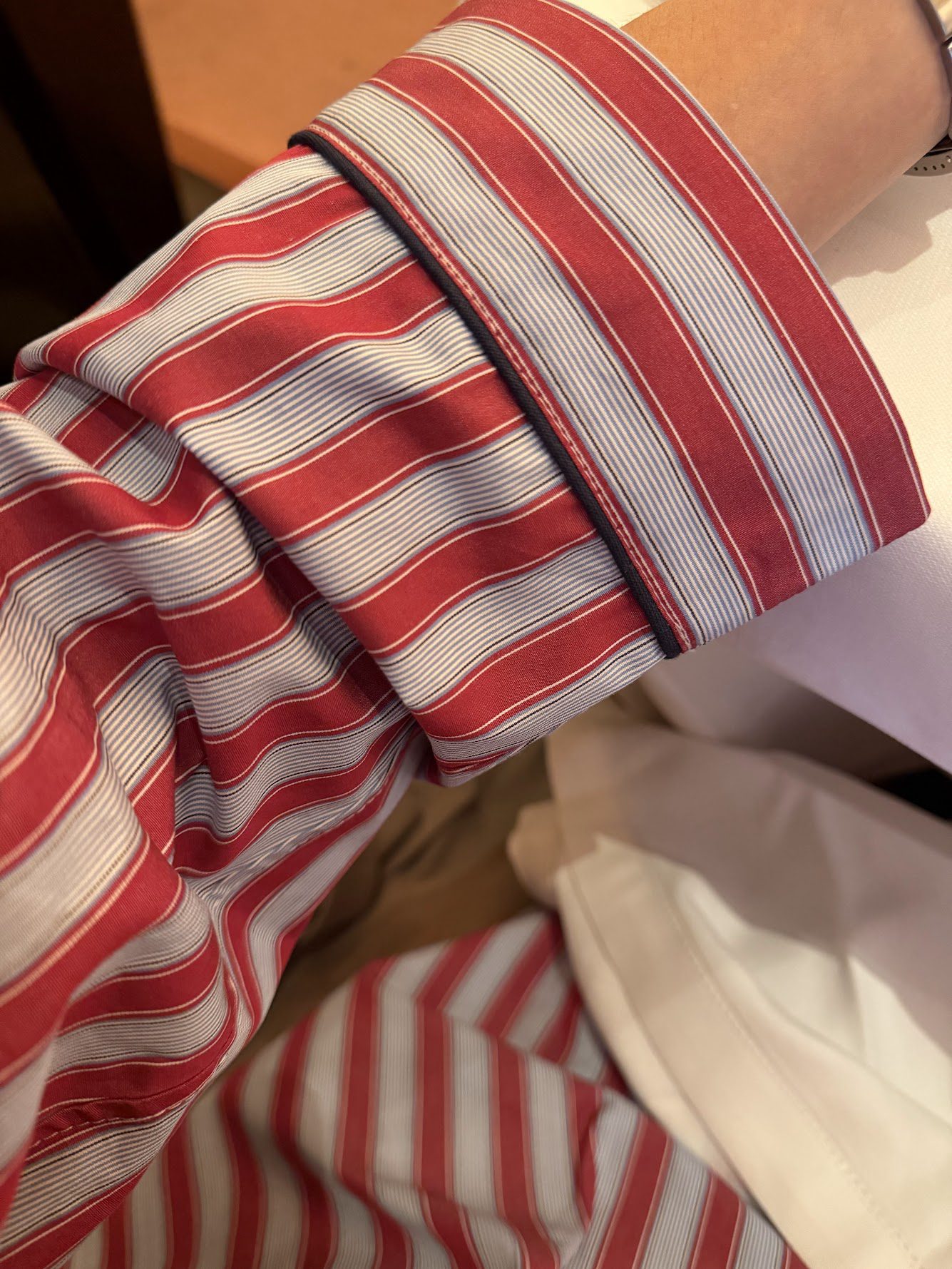 Woman Long Pyjama – Red & Blue Stripe with Liberty William Morris