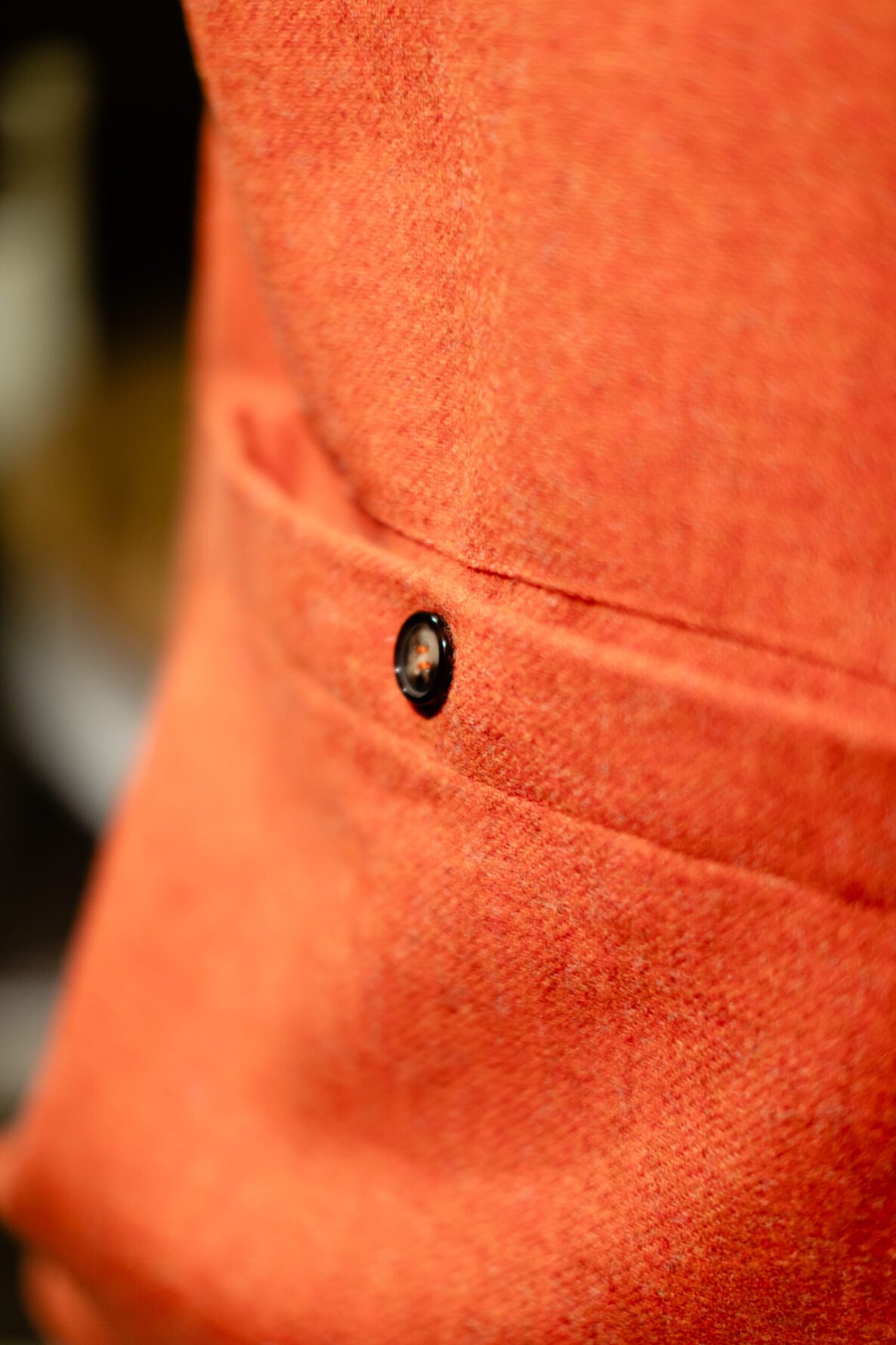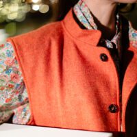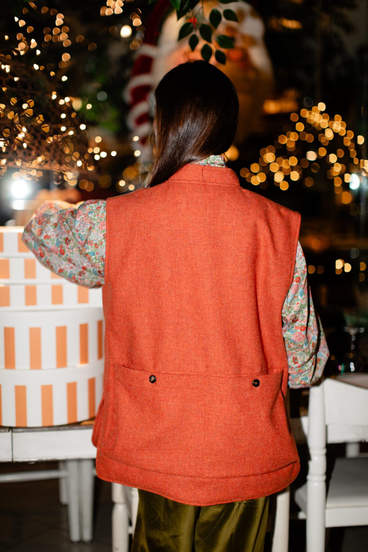 Manìn Gardener Vest – Lobster Orange Shetland & Liberty Theo